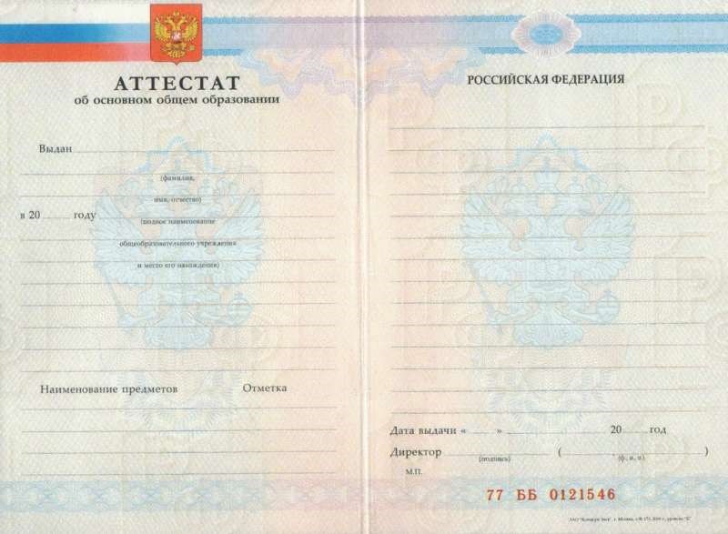Аттестат об основном образовании (выдавался с 2007 года по 2009 год включительно)