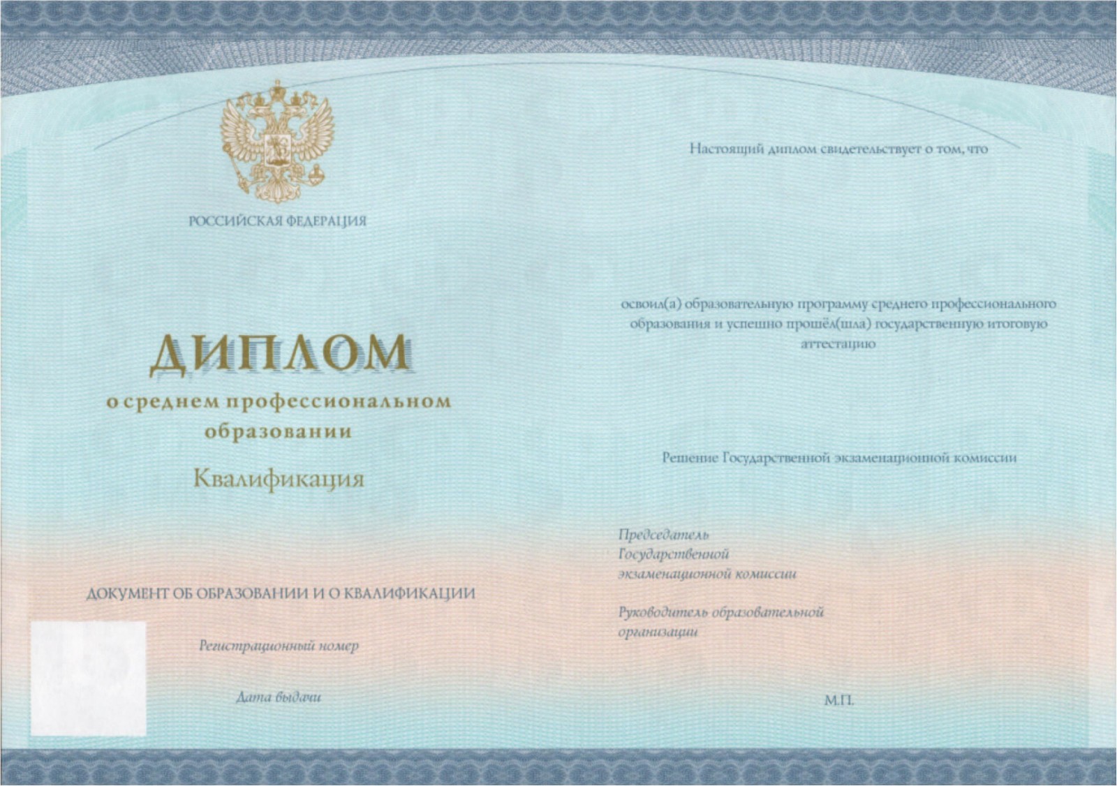 Диплом Техникума, Колледжа (новый образец 2014 - 2025 год)