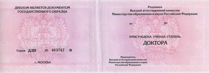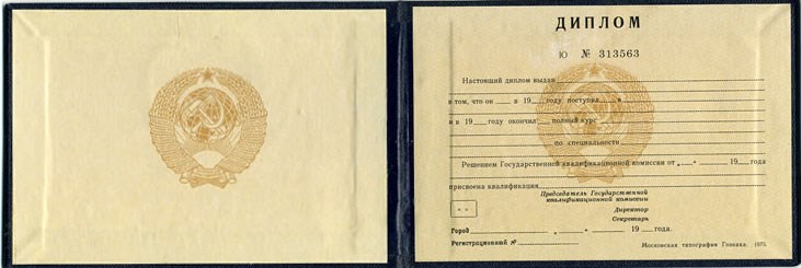 Диплом ВУЗа СССР (академия, институт, университет, выдавался до 1996 года включительно)
